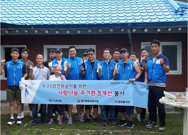 경기북부보훈지청은 7월 23일 PJ청년봉사단(이은재 상사, 노대균 상사)와 파주 거주 6.25 참전유공자 박?원(해병대 1기) 어르신댁을 대상으로 “사랑나눔 집수리 봉사”를 실시했다.