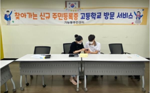 의정부시 가능동주민센터는 7월 18~19일 양일간 의정부여자고등학교와 의정부고등학교를 직접 방문해 신규 주민등록증을 발급해주는 찾아가는 신규 주민등록증 발급 서비스를 실시했다.