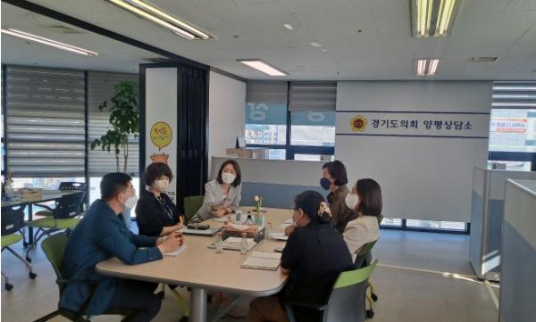 경기도의회 박명숙 의원(국민의힘, 양평1), 이혜원 의원(국민의힘, 양평2)이 25일 경기도의회 양평상담소에서 양평군청 신동원 기획예산담당관, 방미현 팀장 등과 ‘양평군 특별조정교부금 신청’을 위한 업무 협의를 가졌다.