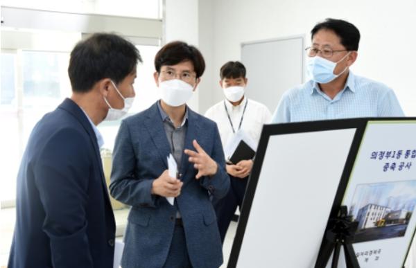 안동광 부시장은 의정부1동 신축청사를 방문해 해당 건축물의 기부채납과 3층 증축사항에 대해 보고받고, 다른 주민센터와 차별화된 건축물이 나올 수 있도록 노력하라고 당부했다.