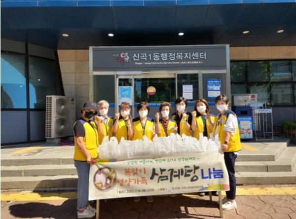 의정부시 신곡1동지역사회보장협의체는 7월 25일 다가오는 중복을 맞아 본격적인 폭염으로 건강이 염려되는 관내 저소득 독거어르신 60가구에게 삼계탕을 전달했다.