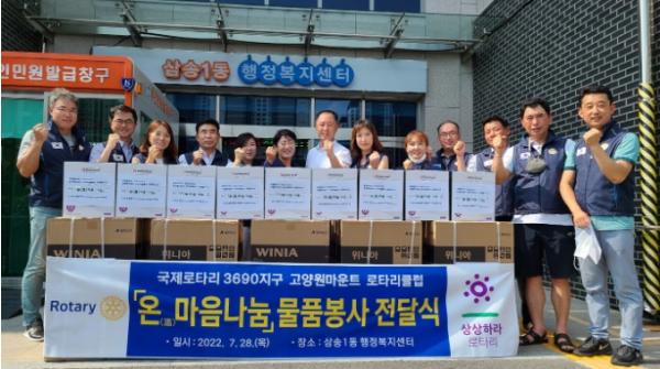 국제로타리 3690지구 고양원마운트 로타리클럽은 지난 7월 18일 삼송1동 행정복지센터와 '온(溫)마음 나눔' 업무협약을 맺고, 삼송1동 취약가구를 대상으로 복지사업을 펼쳐나가고 있는 곳이다.