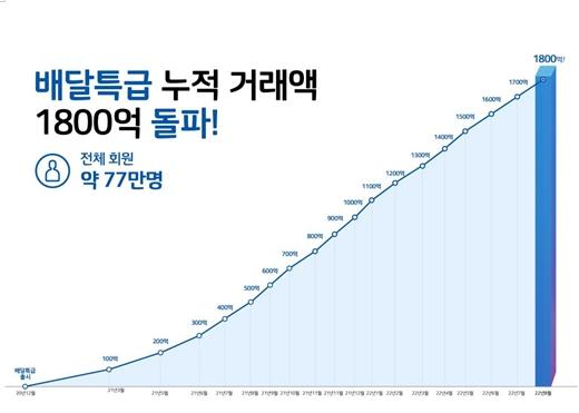 배달특급은 지난 6월 1일 1,600억 원을 돌파했고 이어 7월 2일에는 1,700억 원을 넘었다. 한 달이 채 지나기도 전에 배달특급이 1,800억 원을 넘으면서 꾸준한 성장을 여실히 증명했다는 평가다.
