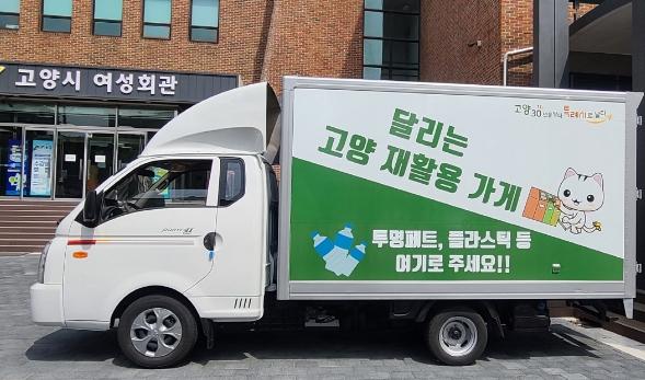 현재 ‘청년 희망 일자리’ 사업 참여자 6명이 이동식 자원순환가게인 ‘달리는 고양 재활용가게’를 통해 페트병과 플라스틱 등 생활 재활용품 회수에 적극 나서고 있다.