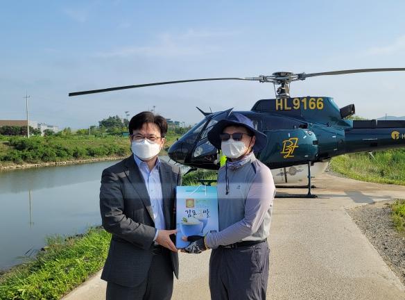 김포시는 지난 7월 25일부터 29일까지 김포시 벼 재배 전면적(4,375ha)을 대상으로 김포시 특수시책인 벼 병해충 친환경 1차 항공방제를 실시했다고 밝혔다. 김병수 김포시장은 지난 7월 26일 이른 아침부터 항공방제 현장을 방문하여 추진상황을 점검하고 관계 공무원과 농업인, 헬리콥터 용역업체 직원 등 현장 작업자들을 격려했다.