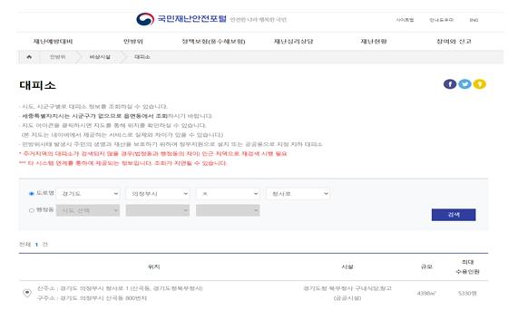 현재 도내에는 77개소의 정부 지원 주민대피시설과 3,703개소의 공공용 주민대피시설이 지정돼 있으며, 상세 위치와 이동 경로 등은 ‘국민재난안전포털’을 통해 확인할 수 있다.