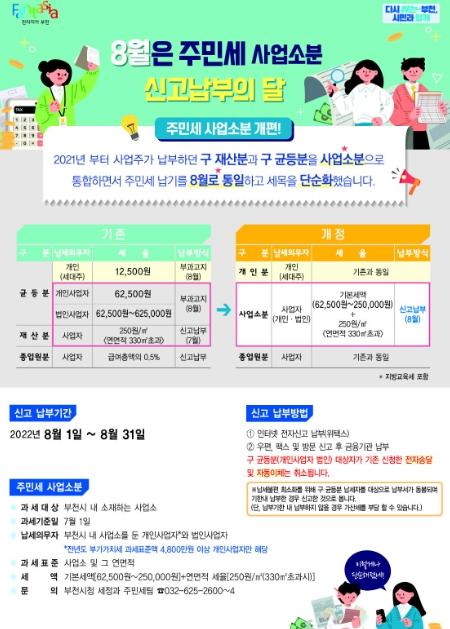 부천시가 올해 정기분 주민세 92억3천만 원을 부과하고 적극적인 납부 홍보에 나섰다.