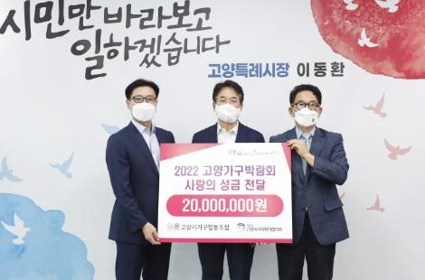 고양특례시가 지난 10일 고양시청에서 ‘고양시가구협동조합 성금 전달식’을 가졌다. 이번 성금 전달은 2022 고양가구박람회 개최 지역환원사업의 일환으로 이루어졌다.