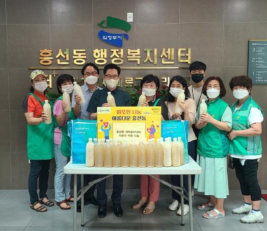의정부시 흥선동행정복지센터 흥선동 새마을부녀회는 10일 코로나19로부터 시민들의 건강과 안전을 지키기 위해 최일선에서 헌신하고 있는 보건소 직원들의 노고를 격려하고자, 식혜 1.5L 100개를 전달했다.