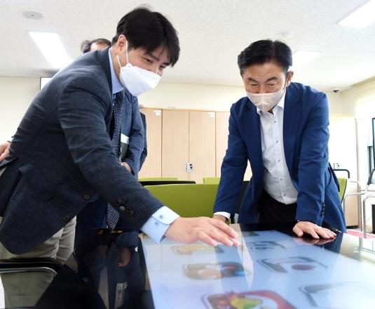 이날 김동근 시장은 센터 관계자들과 함께 시설개요 및 운영 애로사항, 자립교육, 사회교육 프로그램, 종합반 및 단과반 운영에 대한 구체적인 질문·답변을 주고 받았으며, 현장 시설물들을 세밀하게 살폈다.