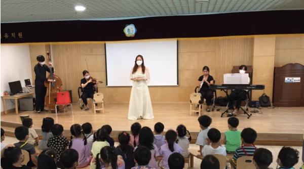 더불어, 유아가 일상 속 아름다움과 예술에 관심을 가지고 감성이 풍부한 사람으로 성장해 갈 수 있도록 다양한 예술 놀이 활동을 지원했다. 여러 악기를 경험할 수 있는 '찾아오는 숲속의 오케스트라 음악회'를 통해 아름다운 목소리와 오케스트라 악기의 조화로운 하모니를 느끼며 예술 감성을 자극했다.