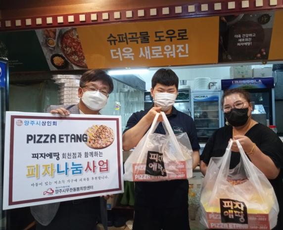 양주시 상인회에 소속된 업체인 피자에땅 회천점은 양주시무한돌봄희망센터를 통해 저소득 아동가구의 결식 예방 및 식생활 개선을 위해 이번달부터 매달 피자 4판을 후원하기로 하였다.