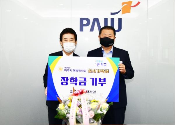 김경일 파주시장이 19일 (재)파주시행복장학회(이사장 고병헌)에 장학금을 기탁했다.
