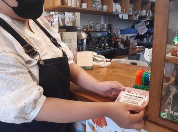 마산동지역사회보장협의체는 복지사업 기금마련을 위한 ‘기부참여 홍보 스티커’를 제작해 지역의 자영업자와 주민들에게 홍보 스티커를 배부했다.