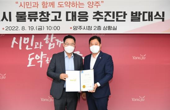 양주시가 19일 시청 상황실에서 옥정 물류창고 허가 직권취소와 법적 대응책 마련을 위해 옥정 물류창고 대응 추진단 발대식을 갖고 본격적인 대응에 나선다.