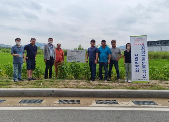 양주시는 19일 백석읍 연곡리 포장에서 시범단지회원과 관계자 등 15명이 참석한 가운데 생산비 절감을 위한 벼 드문모 심기 사업 중간평가회를 개최했다.