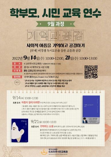 4.16민주시민교육원은 4.16 세월호 참사의 의미를 되새기고 민주시민 역량을 강화하기 위해 다음 달 14일과 21일 ‘사회적 아픔을 기억하고 공감하기’라는 주제로 독서 토론을 운영한다.