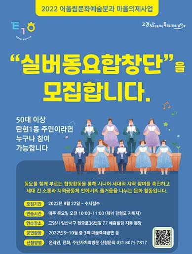 그중 ‘나 마을신문 기자야 ~ ! ’는 지난 10일부터, ‘시니어 동요합창단’은 지난 22일부터 주민 참여 신청을 받고 있다.