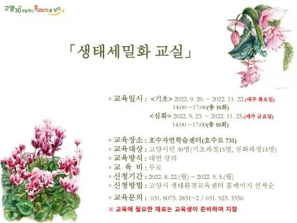 고양특례시 생태환경교육센터가 2022년 생태세밀화교실 기초·심화과정을 9월 20일부터 11월 25일까지 운영한다. 이에 앞서 센터는 각 과정당 교육생을 15명 모집한다.