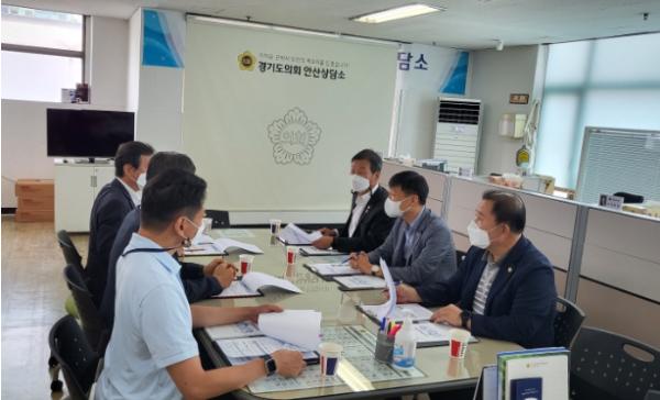 김태희 도의원(안산시2, 경제노동위), 김철진 도의원(안산시7, 문화체육관광위),강태형 도의원(안산시5, 농정해양위)은 23일 경기도의회 안산상담소에서 경기신용보증재단 중부지역본부장, 안산지점장으로부터 경기신용보증재단 안산지점의 주요 업무에 대해 보고받는 자리를 가졌다.