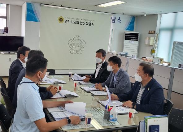 김태희 도의원(안산시2, 경제노동위), 김철진 도의원(안산시7, 문화체육관광위),강태형 도의원(안산시5, 농정해양위)은 23일 경기도의회 안산상담소에서 경기신용보증재단 중부지역본부장, 안산지점장으로부터 경기신용보증재단 안산지점의 주요 업무에 대해 보고받는 자리를 가졌다.