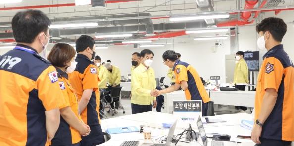 염종현 경기도의회 의장(더민주, 부천1)이 25일 경기도 전시종합상황실을 방문해 ‘2022년 을지연습’에 참여한 공직자를 격려했다.