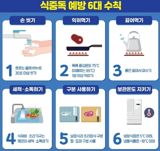 이에 시 관계자는 관내 음식점 업주들에게 6대 식중독 예방 수칙 및 위생 관리법을 발송했다. 주요 내용은 ▲손씻기 ▲냉장보관 ▲익혀먹기 ▲끓여먹기 ▲칼도마 구분 사용 ▲보관온도 지키기 등이다.