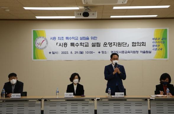 경기도의회 교육행정위원회 안광률 부위원장(더불어민주당, 시흥1)은 29일 시흥교육지원청에서 시흥 거모동에 개교할 특수학교에 대해 설립 추진현황 보고 및 관계자들과의 정담회를 갖은 후 사업 현장을 방문하였다.