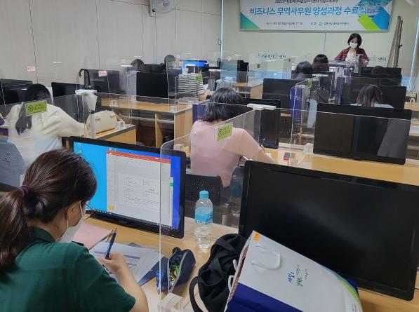김포시는 지난 25일(목) 무역업계로 취업을 원하는 경력단절여성 대상 직업교육훈련인 '비즈니스 무역사무원 양성과정' 수료식을 개최했다.