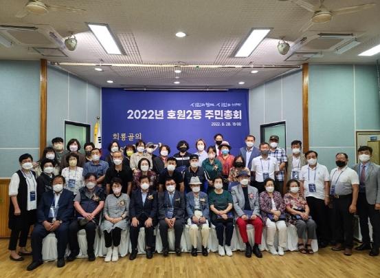 의정부시 호원2동 주민자치회는 8월 28일 호원2동행정복지센터 4층 대회의실에서 지역 국회의원 등 내빈과 주민 150여 명이 참여한 가운데 ‘제1회 호원2동 주민총회’를 개최했다.