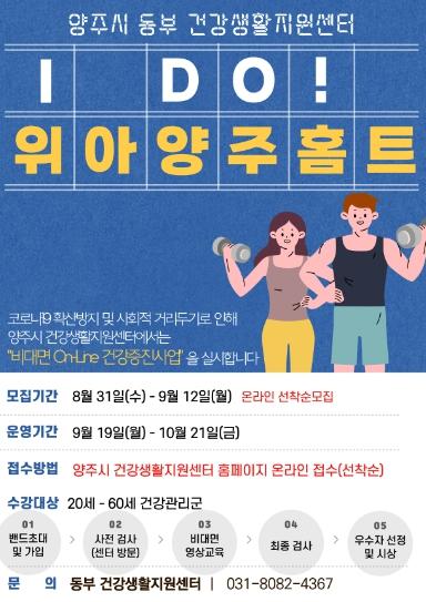 ‘I DO! 위아 양주 홈트’는 참여자들이 시간, 장소의 제한 없이 가정에서도 건강관리를 할 수 있도록 신체활동 교육 영상을 제공하는 비대면 온라인 운동프로그램이다.