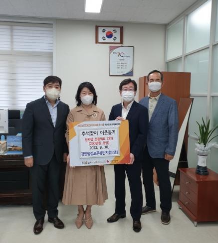 경인항김포물류단지협의회는 지난 30일, 작년에 이어 올해도 어김없이 추석명절을 앞두고 참치선물세트 72개(200만원 상당)를 고촌읍 지역사회보장협의체에 기부하여 어려운 이웃에게 잘 전달해 줄 것을 당부했다.