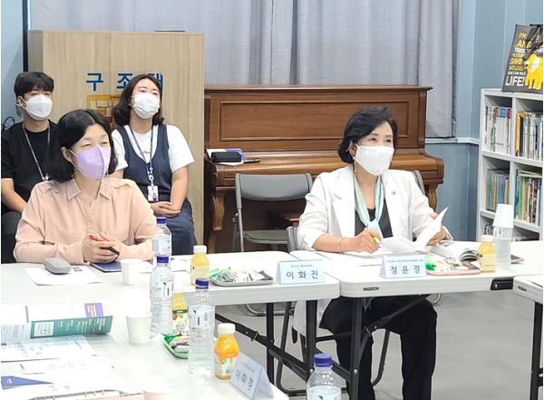 지난 8월 30일, 경기도의회 여성가족평생교육위원회 정윤경 의원(더불어민주당, 군포1)은 군포시 소재 온누리청소년센터를 방문하여 경기남부자립지원관 운영현황을 보고받고, 지난 8월 침수피해를 입은 ‘군포시하나로남자중장기청소년쉼터’를 점검했다.