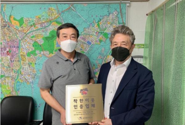 ‘착한 이웃’ 인증사업은 송산2동 지역사회보장협의체에서 진행하는 특화사업으로 연 100만 원 이상, 분기 1회 이상 또는 정기적으로 후원금(품)을 기부해 어려운 이웃에게 나눔을 실천하는 업체에 기부현판을 수여하는 사업이다.