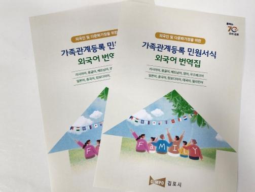 김포시가 늘어나는 외국인과 다문화가족 민원인의 원활한 민원서비스 이용을 돕고자 주요 민원서식에 대한 ‘가족관계등록 민원서식 외국어번역집’ 을 제작했다.