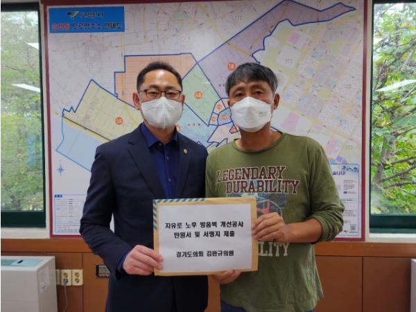 이날 윤현철 통장으로부터 자유로 노후 방음벽 개선공사 탄원서 및 서명지를 전달받은 김완규 의원은 “도촌마을 50세대 가구원은 소수이며 정치적 약자이기 때문에 소음과 분진으로 인한 불편함을 호소해도 그동안 받아들여지지 못했다”며 “노후 방음벽 개선공사가 하루빨리 진행되어 도촌마을 주민분들의 불편함을 해소할 수 있도록 노력할 것”이라 다짐했다.