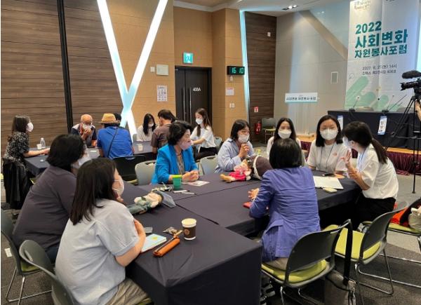 고양시자원봉사센터는 지난 27일 자원봉사를 통한 사회문제 해결방안을 모색하고 시민들의 실천을 촉구하기 위한'2022 사회변화 자원봉사 포럼'을 킨텍스 제2전시장 408호에서 개최했다.