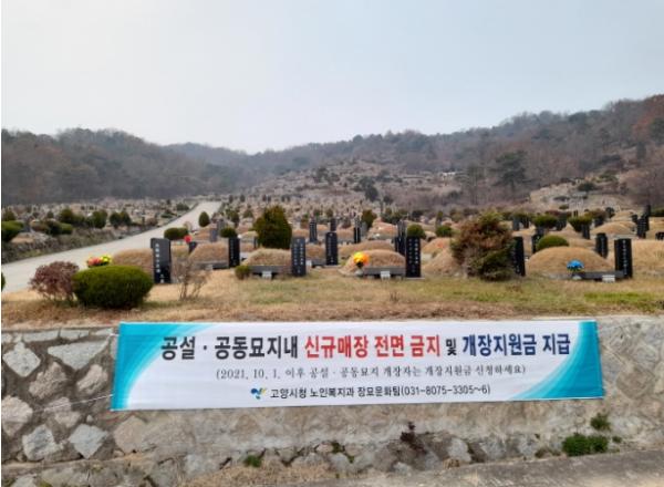 고양시는 공설ㆍ공동묘지 신규매장을 전면 금지하고 개장지원금 지급으로 점진적으로 공동묘지의 분묘 기수를 축소함으로써 장기적으로 공설?공동묘지의 공원화ㆍ현대화를 추진하는 중이다.