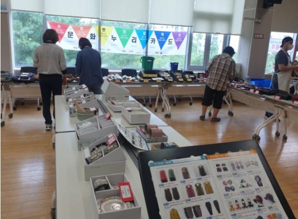 문화누리장터는 문화누리카드 이용 정보가 부족한 지역 어르신들 대상으로 장인, 무형문화재, 공예작가들이 제작하는 수공예문화상품을 구매하도록 상품을 전시하는 자리로 현장에서 견본을 보고 문화누리카드로 구매하면 무료로 집으로 배송된다.