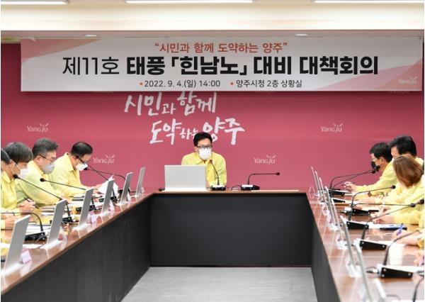 양주시는 4일 시청 상황실에서 태풍 ‘힌남노’에 대비해 긴급 대책회의를 개최하고 태풍 피해 예방책 모색에 나섰다.