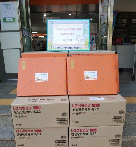 고양특례시 일산서구 탄현1동 행정복지센터에서는 탄현동 대림교회에서 따뜻한 추석을 맞이하기 위하여 어려운 이웃들에게 전달해달라며 샴푸, 칫솔, 치약 등 생활용품 추석선물 60세트를 전달받았다고 밝혔다.