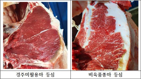 아울러 지방산 중 올레익산 함량을 분석한 결과, 비육 품종 말은 38.58%, 경주 미활용 말는 35.41%로 조사됐다.