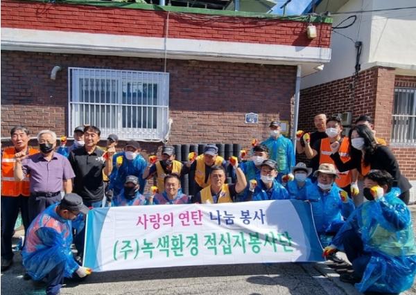 ㈜녹색환경은 매년 송산1동의 난방취약가구를 위해 연탄 기부를 이어오고 있으며, 올해 6월 관내 독거노인가구의 가정을 방문해 생활 쓰레기들을 수거하고 묵은 이불은 새것으로 교체해 드리는 등의 봉사활동으로 이웃 사랑을 실천해 나가고 있다.