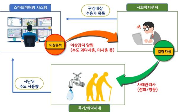 고양시의 1인 가구는 매년 증가하고 있을 뿐만 아니라 코로나19로 인한 사회적 단절과 빈곤, 실직, 질병 등 위험이 동시에 증가하고 있다. 이들에 대한 적극적인 대책이 필요한 상황에서 고양시는 독거가구 및 취약세대의 수도 사용량을 모니터링해 수도 과다사용 혹은 미사용 등 이상 상황이 발생하면 즉시 사회복지부서 관계자가 현장에 출동하는 사회안전망 시스템을 구축할 계획이다.