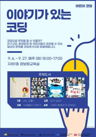 도서관 관계자는 ”독서와 소프트웨어가 융합된 코딩 교육을 통해 일상의 고민과 환경오염 등 사회적인 변화에 관심을 가지고, 독서의 즐거움을 발견하는 기회가 될 것으로 기대한다“고 전했다.