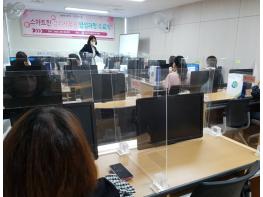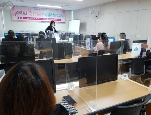 '스마트한 경리사무원 양성과정'은 김포시의 산업단지 조성 등으로 꾸준한 경리 구인수요와 사무직으로 취업을 희망하는 미취업 여성 구직자의 취업역량 강화를 위해 개설됐으며 전산회계, 엑셀 활용, 포토샵 등의 교육을 통해 기업 실무에 적합한 교육생 양성을 목표로 진행됐다.