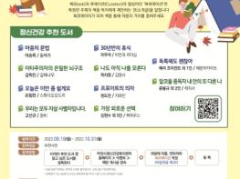 ‘제2회 마음의 거리를 좁히는 정신건강 북큐레이션’은 오는 9월 19일부터 10월 31일까지 개최한다. 도서를 매개로 정신건강에 대한 올바른 이해를 돕고, 시민 스스로 심리·정서를 들여다 볼 수 있는 기회를 제공한다는 취지로 기획됐다.