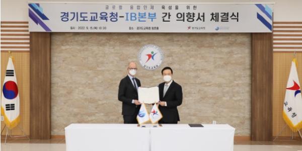 경기도교육청과 IB 본부(회장 올리-페카 헤이노넨)는 15일, 국제 바칼로레아 프로그램 도입과 교육 협력의 토대를 마련하기 위한 의향서에 서명했다.