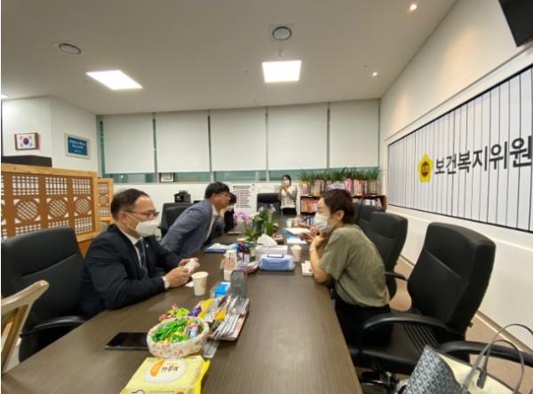 김재훈 경기도의회 보건복지위원회 의원(국민의힘, 안양4), 박재용 경기도의회 보건복지위원회 의원(더불어민주, 비례)은 14일 경기도의회 보건복지위원회실에서 경기장애인부모연대 탁미선 회장, 지부장들과 만났다.