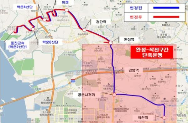 이에 따라 인천광역시와 운수업체(선진버스)의 적극적인 협의를 거쳐 기존 종점을 작전역에서 완정역으로 노선을 단축하여 운행시간과 배차간격을 단축했다.